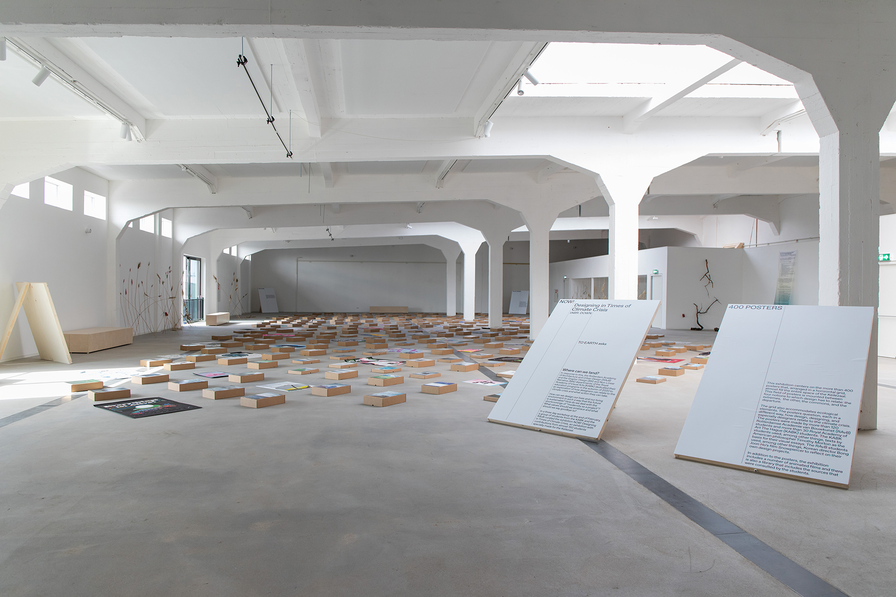 Based on some elements of the already existing identity of IABR: Down to Earth (designed by Roosje Klap), I have developed a visual system based on the notion of verticality, inspired by the question IABR was asking: Where can we land? The system was both in use for production of social media content and for development of the graphical content in the exhibition space.